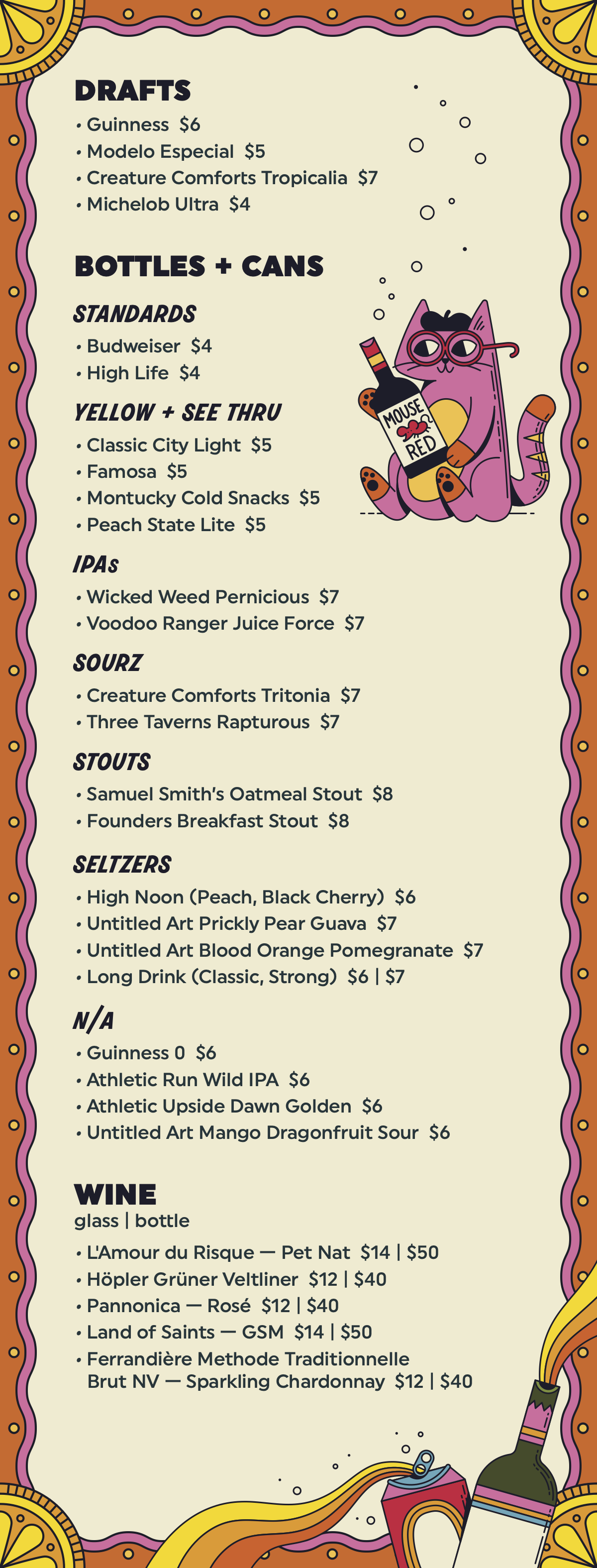 OAK STREET BAR MENU
